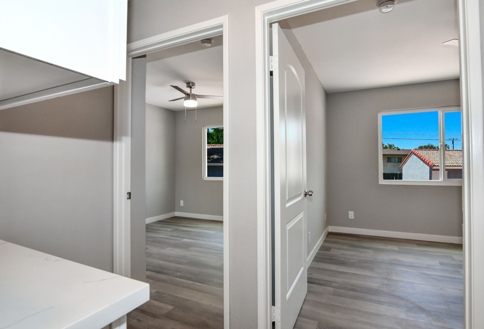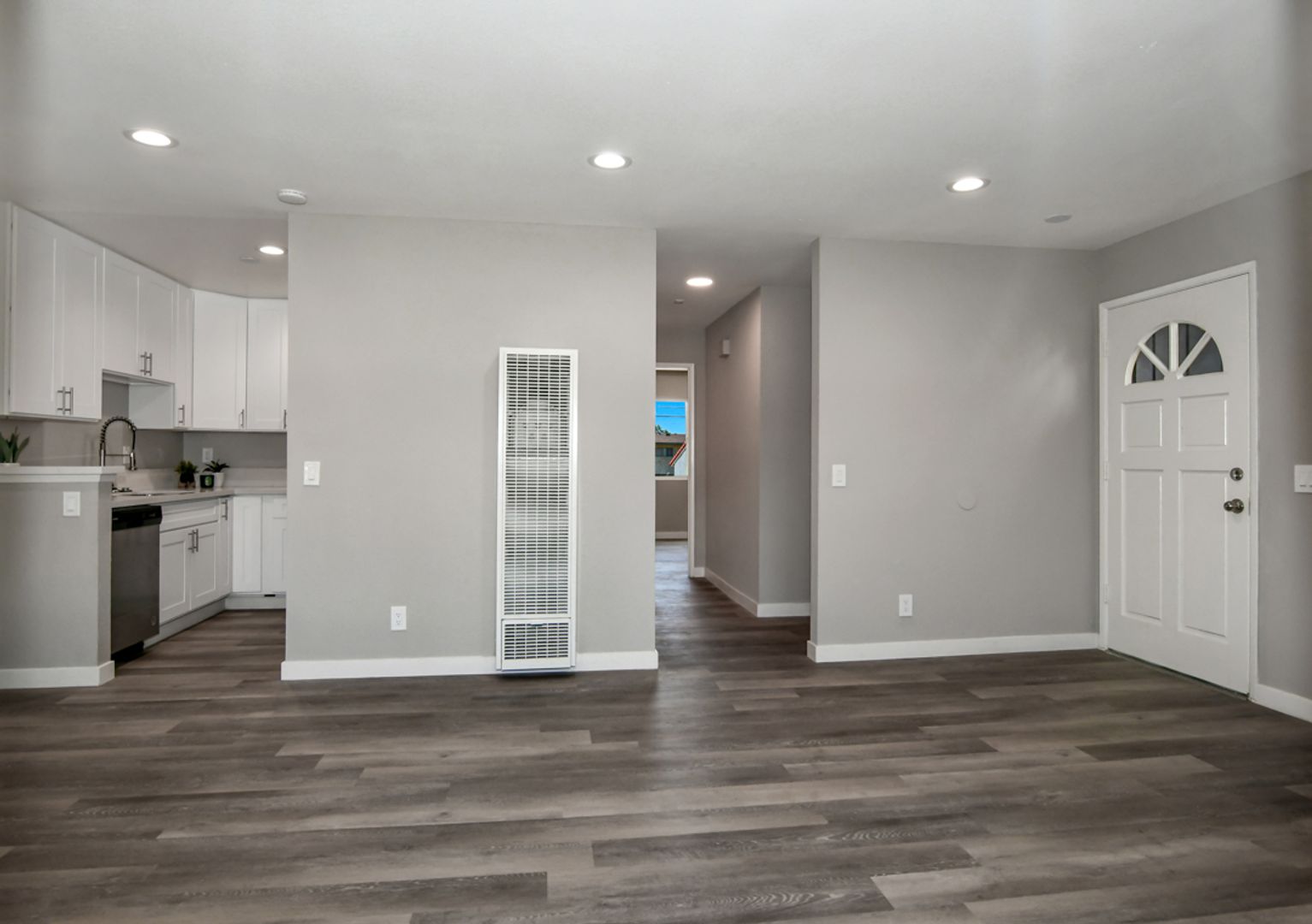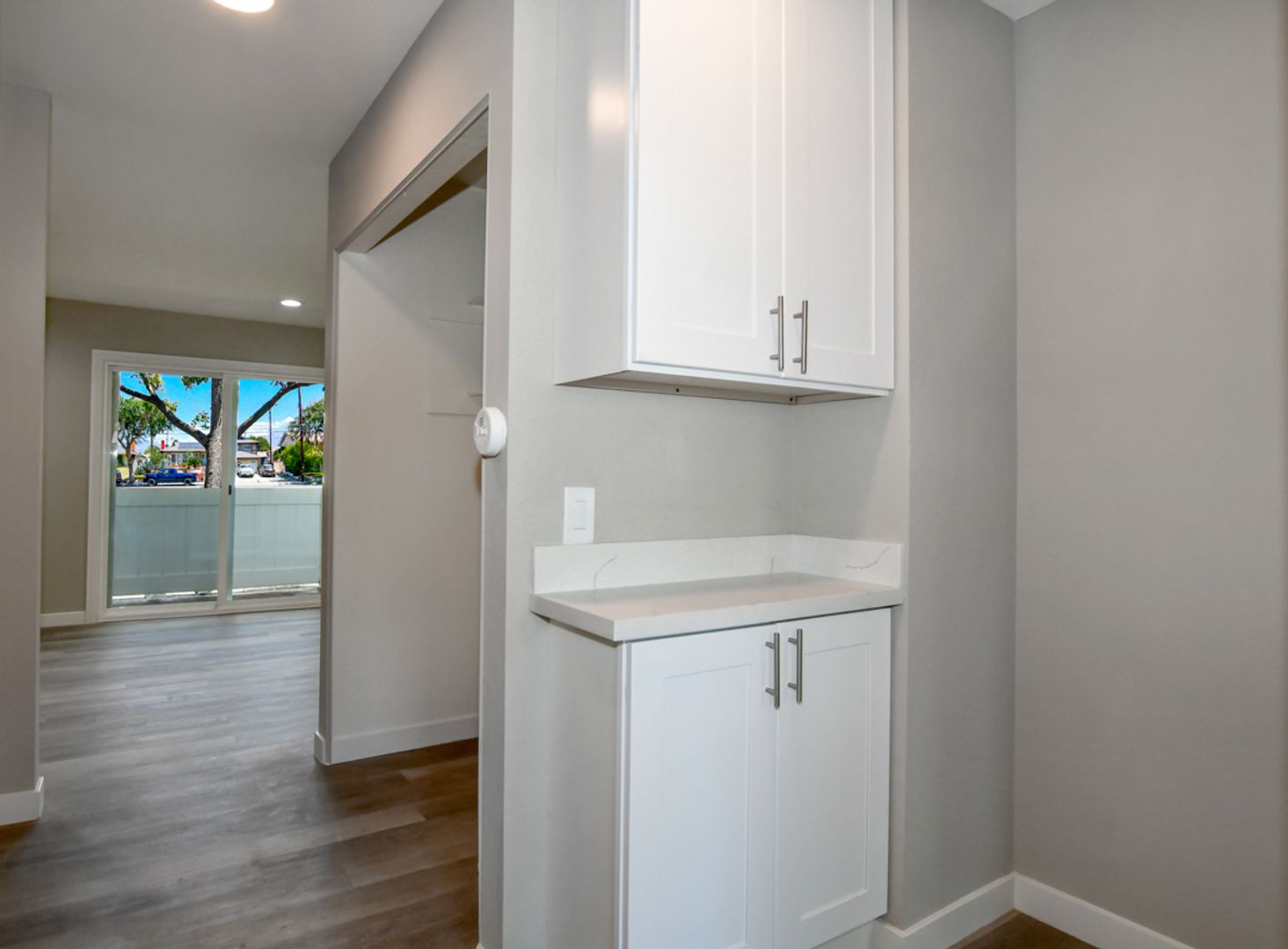Step into luxury in this completely renovated first floor 2-bedroom, 1-bathroom apartment in Upland. No detail has been overlooked, from the pristine white shaker kitchen cabinets to the quartz countertops, stainless steel appliances - Dishwasher, Gas Oven/Stove, and Dishwasher, and stylish gray wood-like flooring. Large windows flood the home with natural light, complemented by new blinds, air conditioning, and contemporary light fixtures.