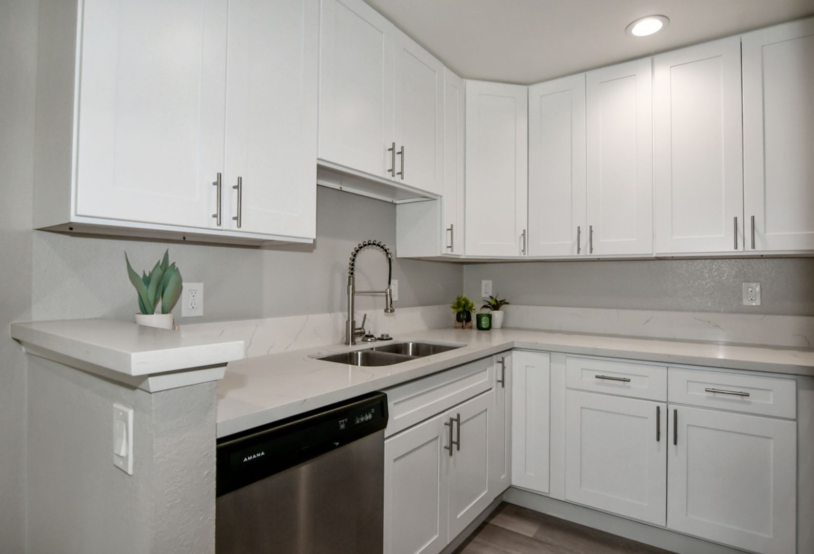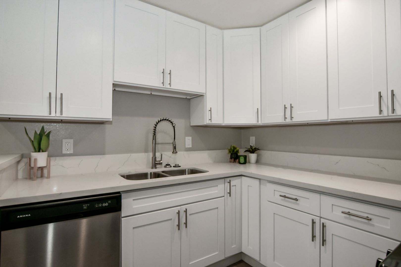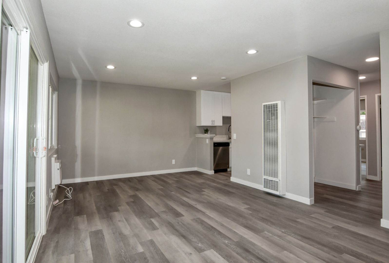 Step into luxury in this completely renovated first floor 2-bedroom, 1-bathroom apartment in Upland. No detail has been overlooked, from the pristine white shaker kitchen cabinets to the quartz countertops, stainless steel appliances - Dishwasher, Gas Oven/Stove, and Dishwasher, and stylish gray wood-like flooring. Large windows flood the home with natural light, complemented by new blinds, air conditioning, and contemporary light fixtures.