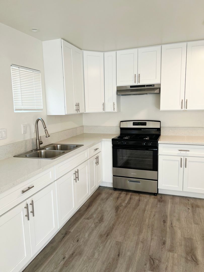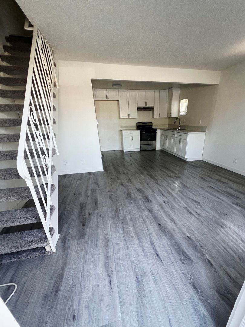 Welcome to this stunning two-story, 2-bedroom, 1.5-bath townhome located in the heart of the East San Gabriel Valley! This beautifully renovated home boasts a modern design with bright white paint throughout, complemented by brand-new flooring. The kitchen features brand new sleek shaker cabinets, crisp white quartz countertops, and a new gas oven range—perfect for culinary enthusiasts.